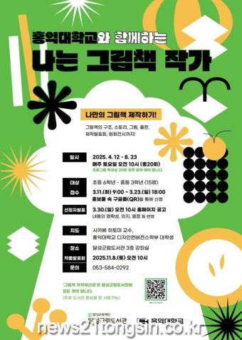 이어서 달성군립도서관의 대표 어린이·청소년 참여형 프로그램, ‘나는 그림책 작가’의 신청접수가 11일부터 시작되며 프로그램은 어린이·청소년들의 창의력과 표현력 제고를 목표로 하며, 참여 시 홍익대학교와 협업하여 자신의 이야기를 그림책으로 발간하는 경험을 할 수 있다.
