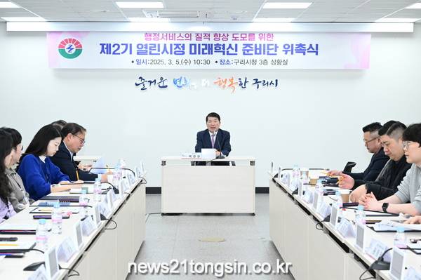 구리시(시장 백경현)는 지난 3월 5일 시청 3층 상황실에서 시민을 위한 혁신적인 정책을 개발하고 고품질 행정서비스를 제공하기 위해 시 공무원들로 구성된 ‘제2기 구리시 열린시정 미래혁신 준비단’의 위촉식을 개최했다.