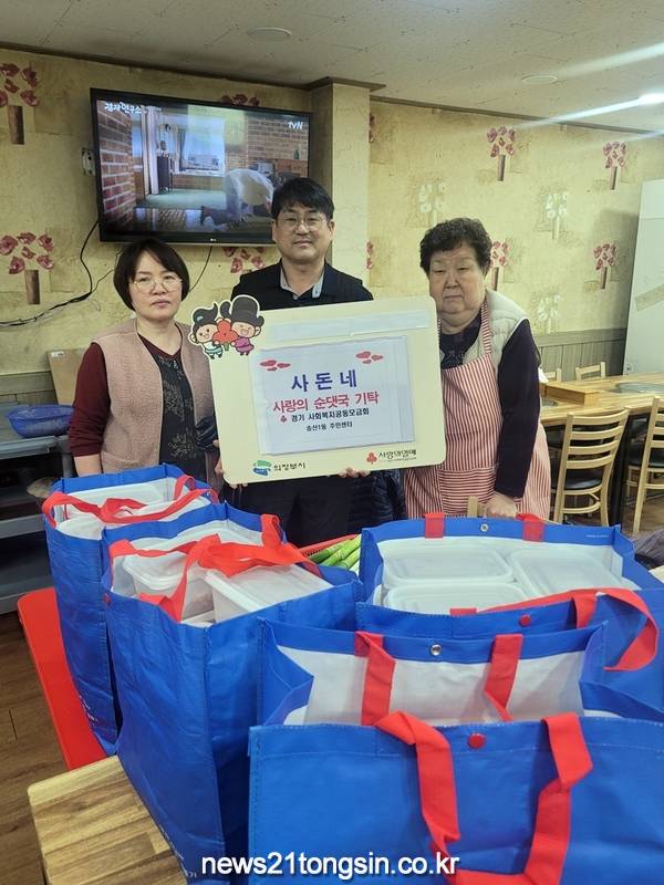 ▲ 사진=의정부시의정부시 송산1동주민센터(동장 김수경)는 지역 맛집인 ‘사돈네’가 매월 관내 독거노인들에게 44인분의 순댓국을 전달하는 뜻깊은 나눔 활동을 시작했다고 7일 밝혔다.