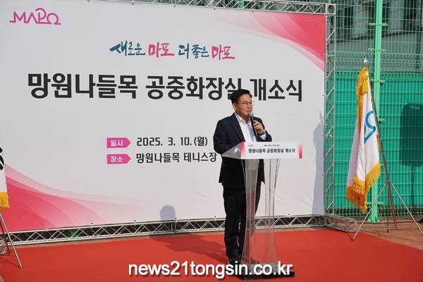 박강수 마포구청장은 3월 10일 오전, 망원나들목 테니스장(동교로1길 53) 인근에 문을 연 공중화장실 개소식에 참석했다.