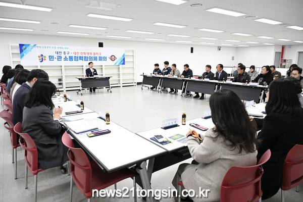 대전 중구(구청장 김제선)는 지난 11일, 청내 다목적 대회의실에서 대전 한화생명 볼파크 관련 민원 해결을 위한‘민관 소통협력협의체’회의를 개최했다고 밝혔다.