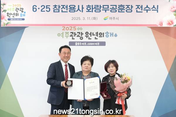여주시(시장 이충우)는 지난 11일 6.25 전쟁에서 국가를 위해 헌신하고 돌아가신 무공수훈자의 유족에게 화랑무공훈장을 전수하였다.
