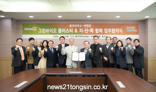 ▲ 사진=연천군연천군은 지난 11일 동국대 바이오메디캠퍼스 약학관 2층 회의실에서 동국대와 ‘경기북부 그린바이오 클러스터 기반 구축 및 경기도 RISE 사업 추진을 위한 업무협약(MOU)’을 체결했다고 12일 밝혔다.