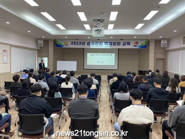 27일 실시한 역량 강화 교육은 ‘성과관리 트렌드 및 고도화 방향’을 주제로 두 차례 진행했다. 1차 교육에서는 부서장을 대상으로 성과관리에 대한 최근 흐름과 관리자의 역할을 강조했고, 2차 교육에서는 지표 담당자를 대상으로 성과평가에 대한 이론과 평가체계 고도화를 위한 내용을 다뤘다.