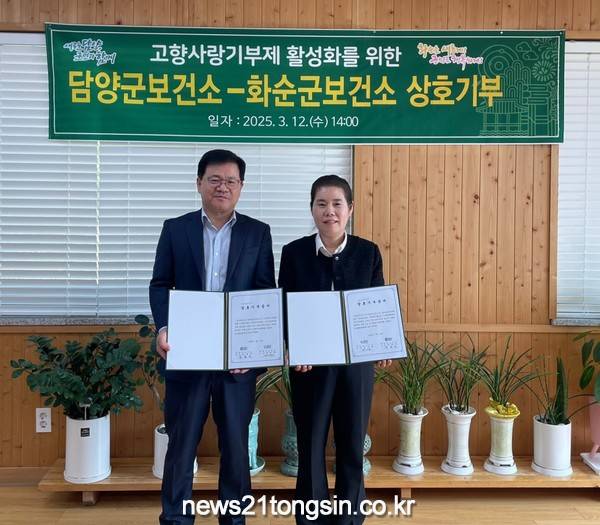 담양군에 따르면, 지난 12일 담양군 보건소에서 담양군과 화순군 보건소의 고향사랑기부제 상호 기부식을 진행했다.