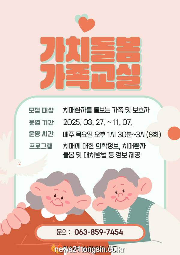 시 관계자는 "보호자에게 다양한 정보를 제공하고, 돌봄 부담 완화를 위해 가치돌봄 가족교실을 운영한다"며 "보호자들이 치매 환자와 함께 건강한 일상을 이어갈 수 있도록 최선을 다해 지원하겠다"고 말했다.