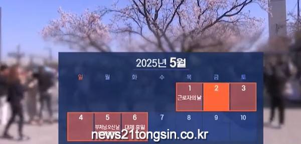 오는 5월 2일이 임시공휴일로 지정되면 근로자의 날인 5월 1일 목요일부터 대체공휴일인 6일 화요일까지, 휴가를 사용하지 않고도 최장 6일의 연휴가 가능해진다.
