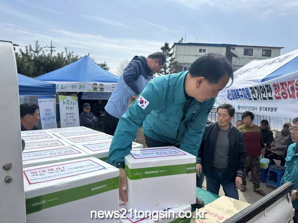 ▲ 사진=포천시포천시 화현면(면장 배상근)은 지난 13일 화현면 이장협의회(회장 이강인), ㈜로뎀푸드(대표 양윤주), 화현면 적십자봉사회(회장 정선아)와 함께 공군 전투기 오폭 사고 피해 주민을 위한 구호 물품을 전달했다.