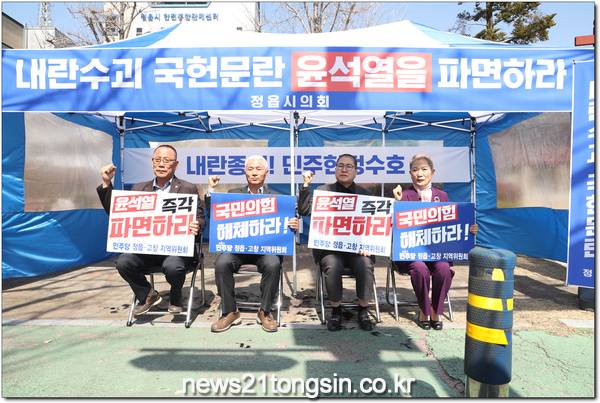 전북특별자치도 정읍시의회 더불어민주당 소속 의원들이 14일 윤석열 대통령에 대한 헌법재판소의 신속한 파면 결정을 강력히 촉구하하며 천막농성을 시작했다.