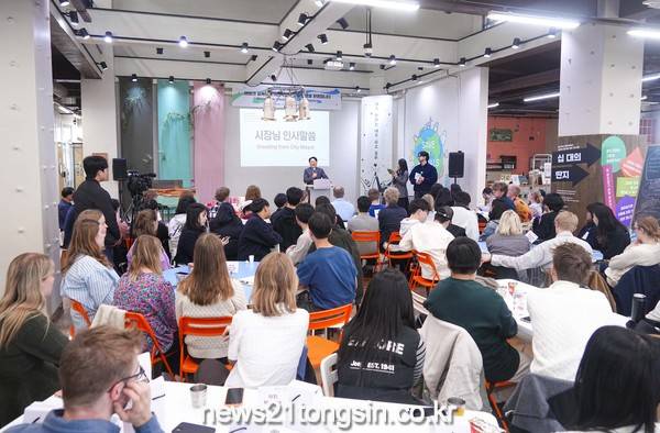 16일 오후, 광주광역시 동구에 위치한 광주청소년삶디자인센터에서 강기정 시장이 덴마크 실케보르 시민학교의 교사와 학생들을 환영하는 자리를 가졌다.