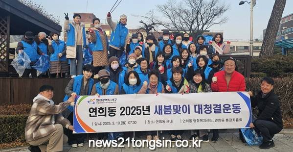 인천 서구 연희동 행정복지센터(동장 김형자)는 지난 10일 통장자율회(회장 김정숙)와 함께 건강하고 쾌적한 마을 환경을 조성하는 ‘2025년 새봄맞이 대청결운동’을 실시했다고 11일 밝혔다.