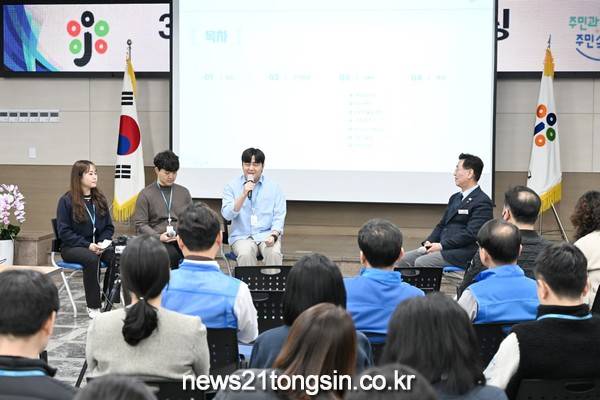 이번 타운홀미팅은 200여 명의 직원들이 참석한 가운데, 직원들의 목소리를 보다 솔직하게 전달하기 위해 주니어보드에서 김제선 구청장에게 전하고 싶었던 의견들을 익명으로 취합해 전달하는 방식으로 진행됐다.