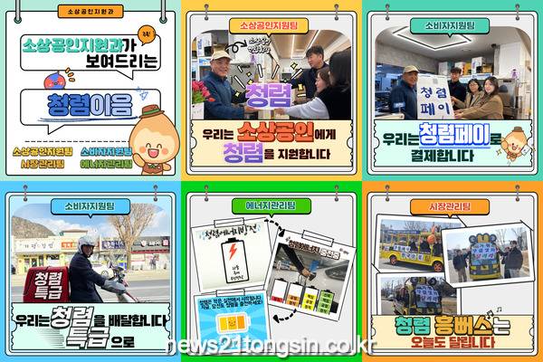 릴레이 첫 지목부서인 소상공인지원과는 ‘청렴’을 주제로 각 팀별 특성에 맞춰 ‘청렴페이’ ‘청렴 특급배달’ ‘청렴에너지 충전’ ‘청렴 흥뻐스’ 등으로 코믹화 한 포스터를 제작해 새올 게시판에 올렸다. 청평면의 경우 영화 ‘서울의 봄’을 패러디해서 부서에 답례품으로 배달된 ‘홍삼 박스’를 두고 갈등하는 모습을 극화해서 유머러스하게 담았다.