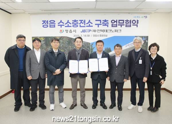 정읍시는 18일 전북테크노파크와 수소충전소 구축 위수탁 업무협약을 체결하며 탄소중립 실현과 무공해차 보급 확대의 기반을 마련했다.