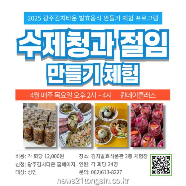 노형근 김치타운관리사무소장은 “적은 체험 비용으로 수제청, 궁중요리, 떡 등 다양한 음식을 배울 수 있는 가성비 높은 체험 프로그램을 마련하고 있다”며 “시민 여러분들의 많은 관심과 참여를 바란다”고 말했다.