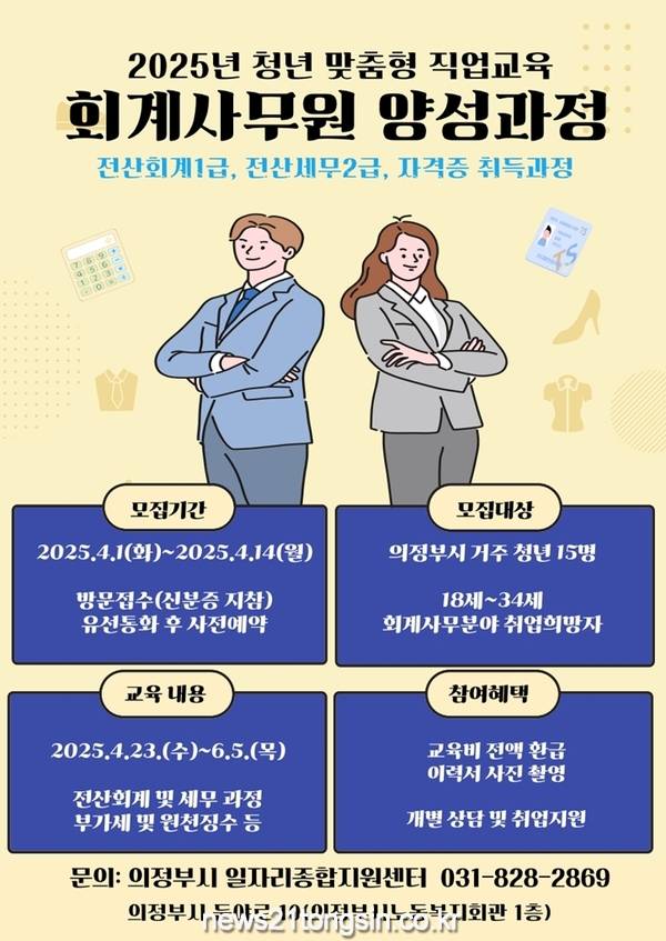 참여 대상은 의정부시에 주소를 둔 18세 이상 34세 이하의 청년 또는 관내 대학교 졸업 예정자로, 회계사무원으로 취업을 희망하는 15명을 선발한다.