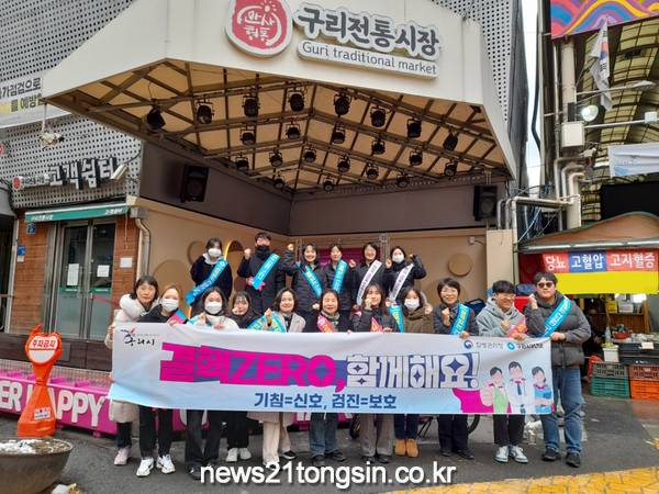 ▲ 사진=구리시구리시(시장 백경현)는 3월 24일인 결핵 예방의 날을 맞아 지난 18일 구리전통시장 일원에서 “기침은 신호, 검진은 보호!!”를 구호로 결핵 예방캠페인을 진행했다.