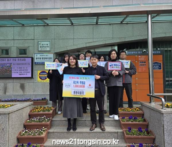 대전 중구 용두동(동장 최순덕)은 20일 사회적협동조합 희망이음터(이사장 원재환)에서 홀로 사는 어르신과 취약계층을 위해 성금 100만 원을 기탁했다고 밝혔다.