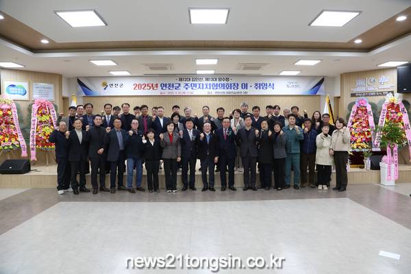 ▲ 사진=연천군연천군 주민자치협의회는 20일 군청 3층 대회의실에서 주민자치협의회장 이취임식 및 간담회를 개최했다.