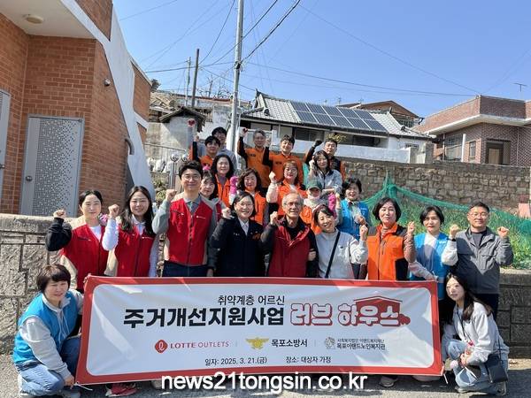 [뉴스21통신 박민창기자] 사회복지법인 이랜드복지재단이 운영하는 목포이랜드노인복지관이 21일 목포시 산정언덕로에 위치한 위기가구 대상자 가정에 방문해 주거개선지원사업 프로젝트인 ‘러브하우스’를 진행했다.