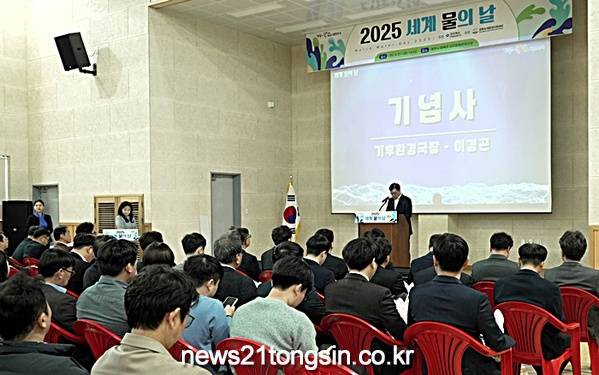 경상북도는 21일 영천 오리장림문화강당에서 ‘세계 물의 날’을 맞아 경북녹색환경지원센터와 함께 물관리의 중요성과 소중함을 알리기 위한 ‘2025년 세계 물의 날’ 기념행사를 열었다.