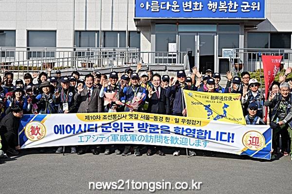 군위군은 지난 22일 오후 4시 의흥면사무소에서 ‘제10차 조선통신사 옛길 서울-동경 한일 우정걷기’ 참가자들을 환영하는 행사를 성공적으로 개최했다.