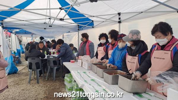 ▲ 사진=포천시한국생활개선포천시연합회(회장 이계숙)가 공군 전투기 오폭 사고 피해 현장에서 피해 주민과 자원봉사자를 위한 급식 봉사에 나섰다.