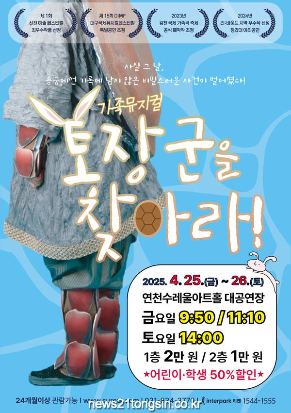 <토장군을 찾아라!>는 한국의 전통 판소리 ‘수궁가’를 현대적으로 재해석한 창작뮤지컬로, 어린이뿐만 아니라 온 가족이 함께 즐길 수 있도록 기획되었다. 유쾌한 대사와 신나는 음악, 역동적인 무대 연출이 어우러져 관객들에게 특별한 감동과 즐거움을 선사할 예정이다.