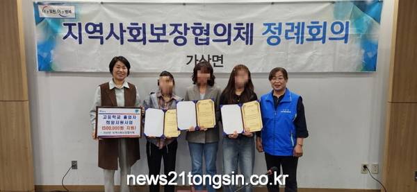 ▲ 사진=포천시포천시 가산면 지역사회보장협의체(공공위원장 윤정아, 민간위원장 김명자)는 지난 26일, 관내 취약계층 가구 고등학교 졸업생을 대상으로 ‘희망 지원 장학금’을 전달했다.