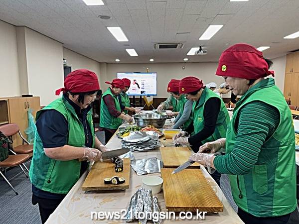 군위군새마을회원들은 이웃 도시인 의성이 산불에 큰 피해를 입었다는 소식을 듣고 한걸음에 달려와 이른 아침부터 모여 김밥을 말기 시작했다.