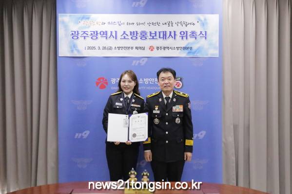 광주광역시 소방안전본부는 28일 본부 회의실에서 미스김을 소방홍보대사로 임명하며, 그녀가 앞으로 소방정책과 안전수칙을 알리는 데 중요한 역할을 할 것이라고 밝혔다. 미스김은 ‘명예소방관 및 소방홍보대사 운영에 관한 규정’에 따라 소방장 계급으로 위촉되어 향후 2년간 다양한 홍보 활동에 참여할 예정이다. 그녀는 각종 안전 캠페인과 홍보 콘텐츠 제작에 힘을 쏟을 계획이다.