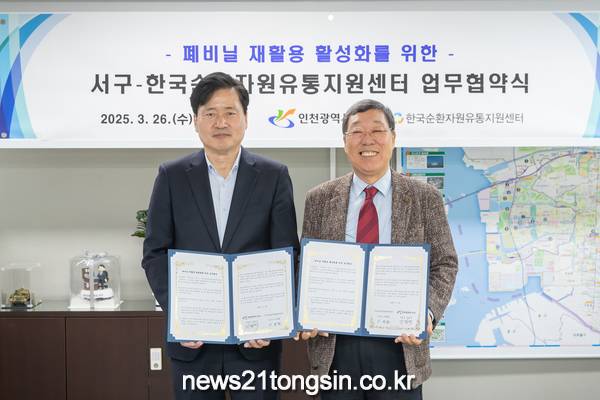 인천 서구(구청장 강범석)는 지난 26일 한국순환자원유통지원센터와 「폐비닐 재활용 활성화를 위한 업무협약」을 체결했다고 27일 밝혔다.
