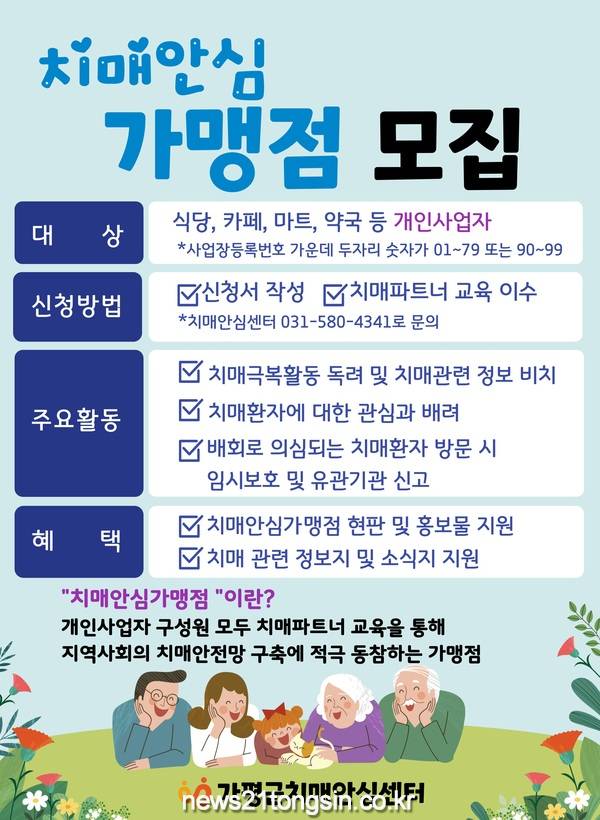 치매안심가맹점 신청 및 문의는 가평군치매안심센터(☎031-580-4341)로 하면 된다.