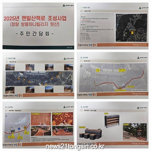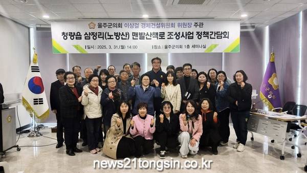 (뉴스21통신/우정석기자) = 울주군이 추진 중인 청량읍 삼정리 노방산 맨발산책로 조성사업과 관련, 주민의견수렴을 위한 정책간담회가 2025년 3월31일 월요일 울주군의회 의사당 1층 세미나실에서 열렸다.