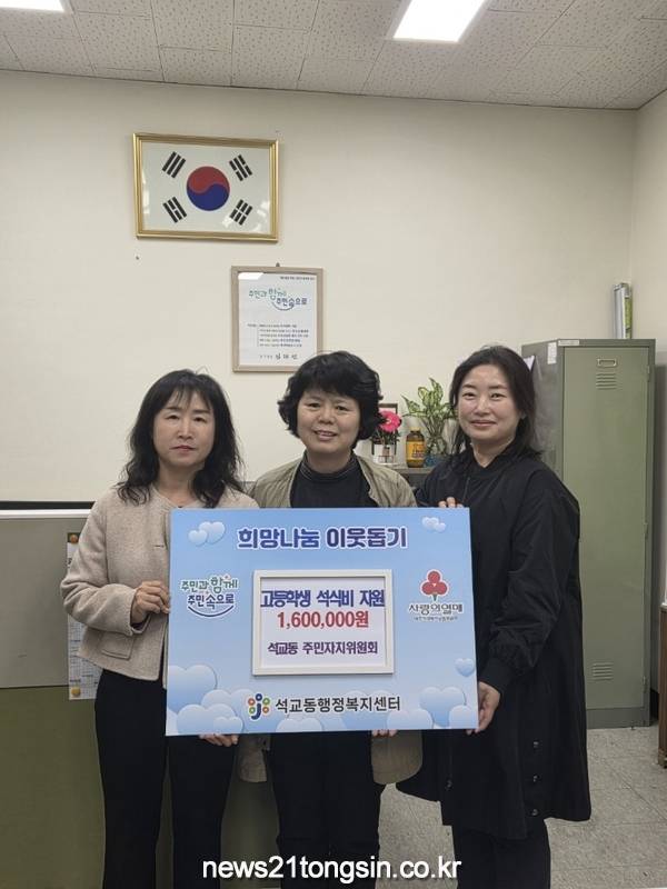 석교동 주민자치위원회는 지난해에도 저소득가정 학생들에게 석식비를 지원한 바 있으며, 올해 역시 주민자치위원들이 십시일반 모은 회비로 지원을 이어가기로 했다.