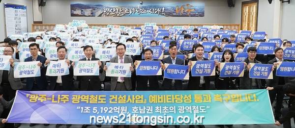 전라남도 나주시가 광주-나주 광역철도사업 예비타당성 조사 통과를 바라는 지역민들의 염원을 하나로 모아 결의를 다지고 있다.