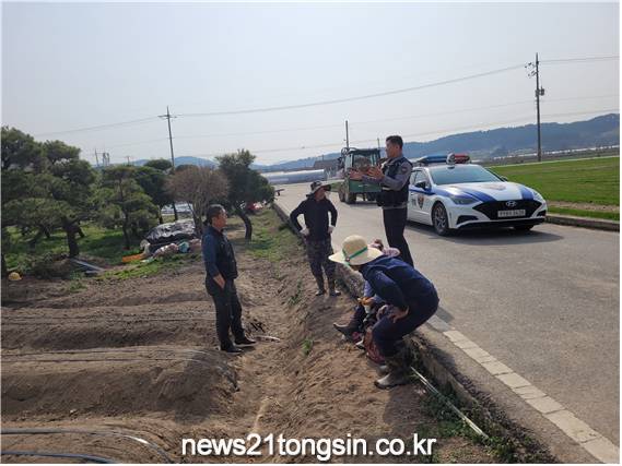 [뉴스21통신전북취재팀]전북특별자치도 정읍경찰서 북면파출소는 지난 31일 관내 농민들을 대상으로 농번기 산불예방 및 농기계 교통사고 방지 등 시민들의 안전을 위한 다양한 홍보활동을 펼치고 있다.
