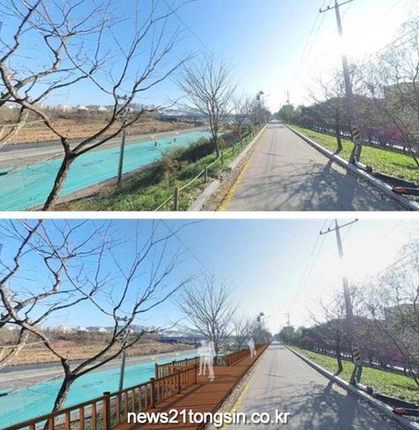 이에 시는 시민들의 보행 안전 확보와 더불어 산책 여가 공간 확보를 위해 산책로 데크 조성을 민선8기 공약사업으로 선정, 경기도 특별조정교부금 5억원을 확보하여 왕숙천 제방도로 상단 법면에 약 250m 구간에 데크 산책로와 관망 공간을 조성을 추진해왔다.