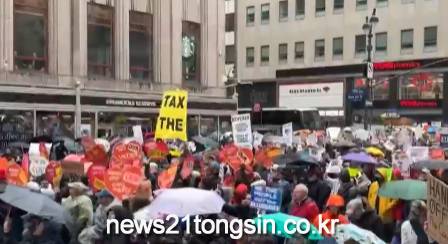 미국으로 들어오는 모든 제품에 기본 상호 관세 10%가 부과된 첫날, 동부 뉴욕, 보스턴에서부터 남부 텍사스를 지나 서부 로스앤젤레스에 이르기까지 미국 전역에서 50만여 명이 거리로 나섰다.