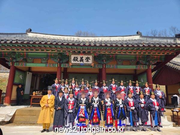 ▲ 사진=연천군고려기원 1108년 숭의전 춘계대제가 4월 6일 개성왕씨종친회(회장 왕봉식) 주관으로 봉행되었다. 이날 제례에 김덕현 연천군수가 초헌관을 맡았으며 아헌관(지재희 한국한시협회 회장), 종헌관(왕두수 숭의전감), 봉조관(왕성규 개성왕씨 중앙종친회 부회장) 등 29명이 대제 봉행에 참여하였다. 또한, 전국 각지에서 모인 개성왕씨와 16공신의 후손 등 300여 명이 함께 제를 올렸다.