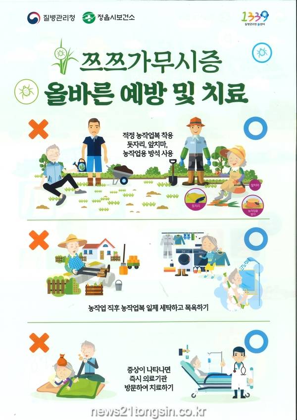 이러한 진드기 매개 감염병을 막기 위해서는 농작업이나 야외 활동 시 긴 바지와 긴 소매 옷을 착용하고, 장화와 모자를 써 피부 노출을 최소화하는 것이 중요하다. 또한 농작업복과 평상복은 구분해 입고, 진드기 기피제를 활용하는 것도 도움된다.
