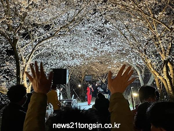 올 행사는 벚꽃길 점등식, 지역 예술가의 거리 공연, 노래자랑, 벚꽃 길 걷기 등 다채로운 볼거리와 체험 거리가 마련돼 상춘객들의 마음을 즐겁게 했다.