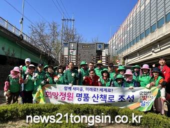 (뉴스21통신/홍미희기자) = 지난 7일 천내천 희망정원에 무궁화, 회양목 등 1,500여 주의 화훼류를 식재하며 ‘천내천 희망정원, 명품 산책로 조성 사업’을 화원읍 새마을협의회·부녀회(협의회장 임이현·부녀회장 서태선)는 추진했다.
