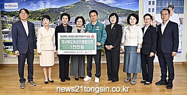 경상북도는 8일 경북 주요 여성단체들이 경북도청을 방문해 경북 북부 지역 초대형 산불 피해 지역 이재민을 돕기 위해 2,500만원의 성금을 전달했다고 밝혔다.