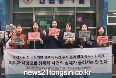 ▲ 사진=kbs뉴스 영상 캡쳐성폭력 피해자 지원 단체인 한국성폭력상담소와 한국여성의전화는 어제 서울경찰청 앞에서 기자회견을 열어 장 전 의원을 고소한 전 비서 A씨가 이런 의사를 전했다고 밝혔다.