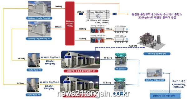 지난 3월 17일에는 수도권 최초로 탄소포집형 수소생산기지 구축을 위한 업무협약을 체결했다. 이 사업은 총 190억 원이 투입되며, 2027년 완공을 목표로 하고 있다. 수소생산기지가 완공되면 하루 1.3톤의 수소를 생산할 수 있는 설비와 하루 13톤 규모의 이산화탄소를 포집할 수 있는 설비가 구축된다. 또한, 생산된 수소 가스를 저장하고 출하할 수 있는 시설도 함께 들어선다.