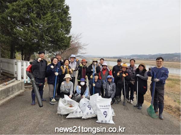 ▲ 사진=연천군연천군 왕징면주민자치위원회(위원장 권영분)는 지난 9일 산책로인 왕징면고구려보루길을 찾는 주민들과 관광객들에게 쾌적한 환경을 제공하고, 아름다운 임진강변의 환경을 조성하기 위해 대대적인 환경정비작업을 실시했다.