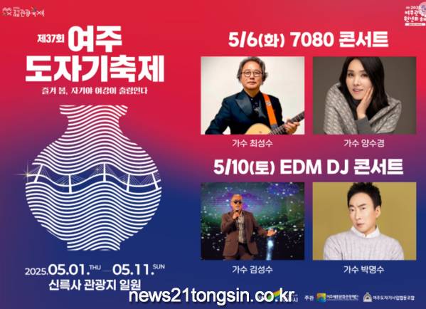 제37회 여주도자기축제가 역대급 축하공연 라인업으로 전국적인 이목을 집중시키고 있다. 오는 5월 6일과 10일, 여주 신륵사 관광지 특설무대에서는 세대를 아우르는 화려한 공연이 펼쳐진다.