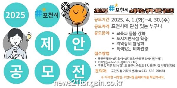 ▲ 사진=포천시포천시(시장 백영현)는 시민이 직접 시정에 참여하고 생활 밀착형 정책을 제안할 수 있는 기회를 제공하기 위해 오는 30일까지 ‘2025년 포천시 소통(疏通)하는 정책 제안 공모전’을 진행한다.