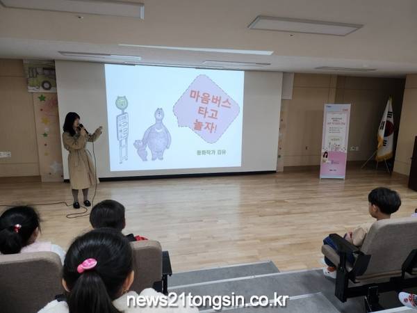 ▲ 사진=포천시포천시(시장 백영현)는 지난 10일 포담초등학교 1, 2학년 학생들을 대상으로 그림책 「마음버스」의 저자 김유 작가와의 만남을 진행했다.